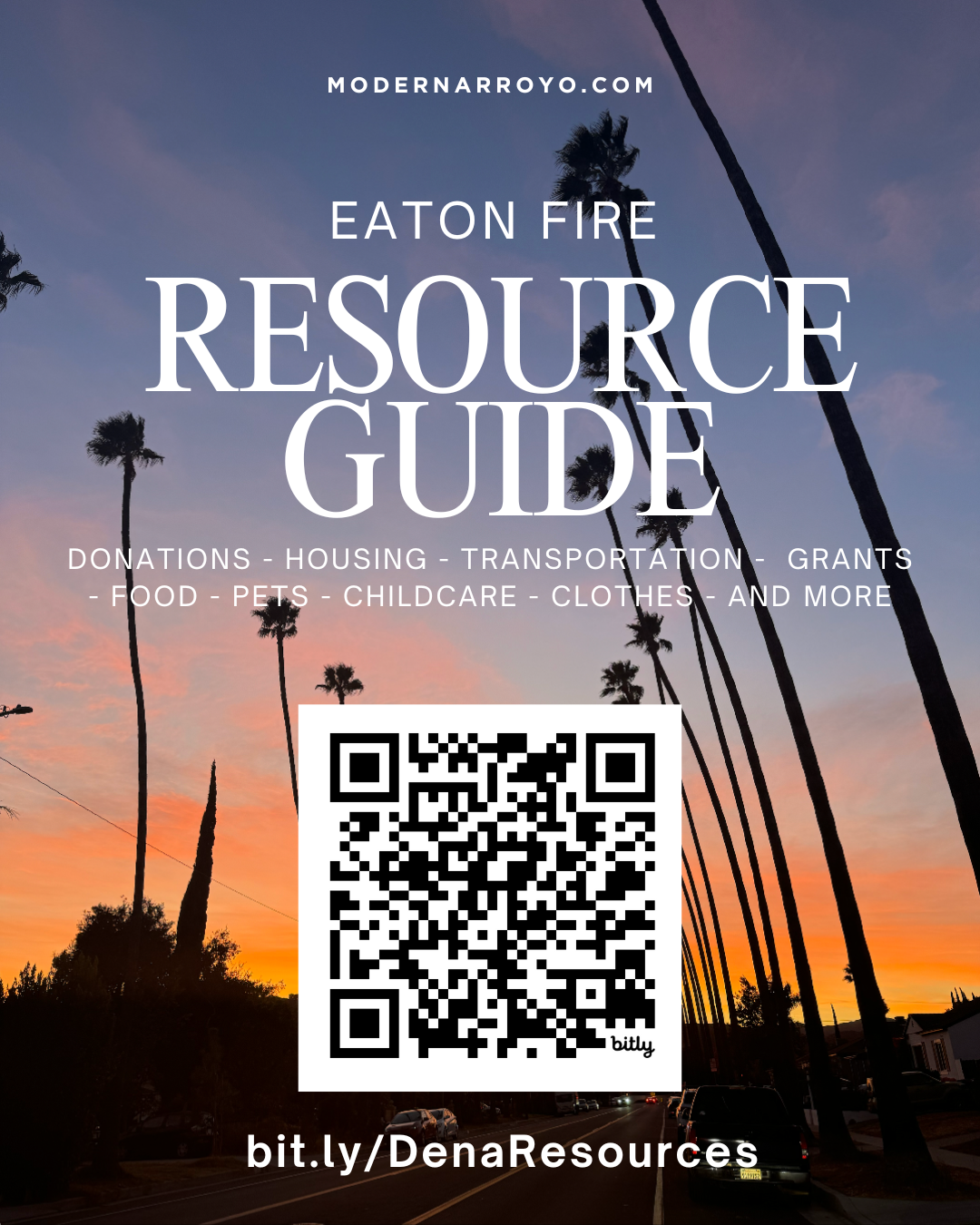 This is such an incredibly difficult time for so many people. Like many, we lost our family home in Altadena that had generations of history. If you find yourself or your family experiencing a loss due to the Eaton Fire, a wonderful local organization I used to work for called Day One put together a resource guide with all the points of contact for various areas of need. There’s places to give or receive donations, shelter, food, clothing, grants, transportation, mental health, childcare, toiletries, supplies and more.